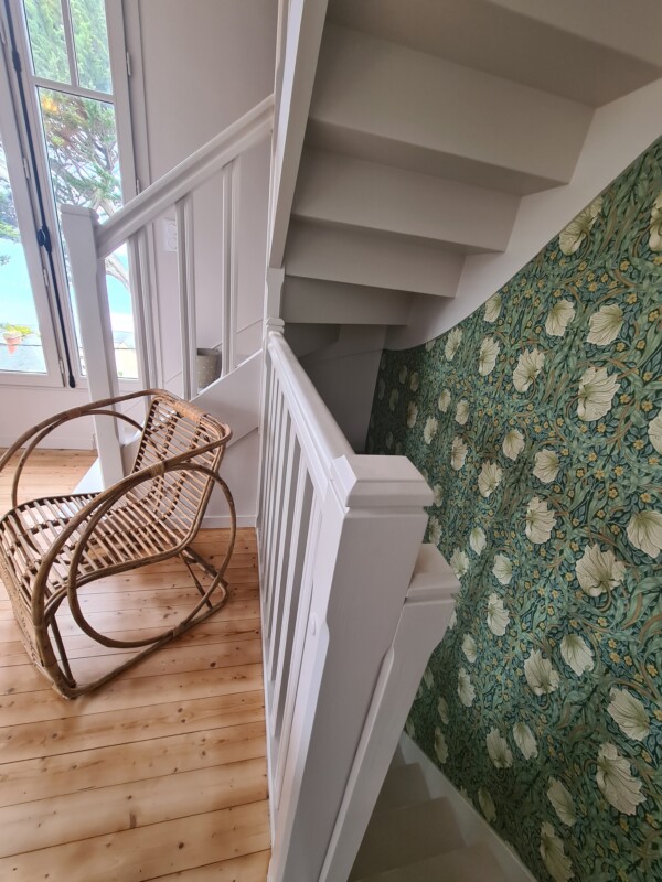 le papier peint de la cage d’escalier