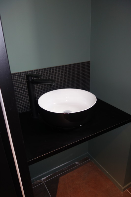 vasque noire murs verts